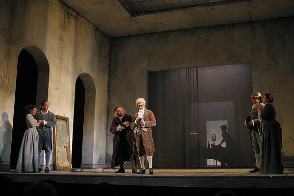 Малый театр — театр психологический, и постановка пьесы Карло Гольдони на его сцене ещё раз это подтверждает. На месте семейных психологов я бы рекомендовала её клиентам всех возрастов к обязательному просмотру. Единственные ограничения для мужей особо ревнивых жён: им места в партере занимать не рекомендуется — чудесные платья, созданные итальянской художницей так волнительно, полуприкрыв, полуобнажают женскую грудь, что выяснение отношений может продолжиться и дома: «Ах, ты так заглядывался на служанку Лизетту!»
