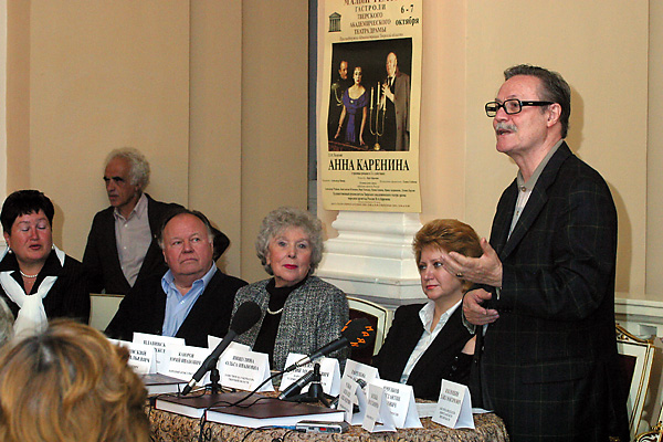 Открыл пресс-конференцию художественный руководитель Малого театра Юрий Мефодьевич Соломин. «К слову провинция я отношусь с большим уважением, и совсем не люблю слова периферия. Своим сильным актерским составом, своим репертуаром Тверская драма может служить примером для многих столичных театров», — сказал Соломин в своей вступительной речи.