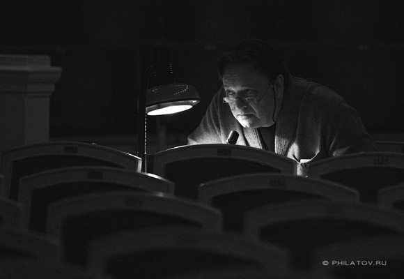 - Самое сложное для меня в этом деле – говорить неприятные вещи товарищам своим, артистам. Говорить: «неправильно, не так». Это очень неприятно, я сам актер, я понимаю, каково это, когда ты делаешь вроде всё как надо, а потом тебе говорят, что это всё впустую. Трудностей много. Мне, например, не хватает опыта в организации самого процесса, множество вещей, которые необходимо контролировать. У меня великолепный помощник – Владимир Егоров, который взял на себя очень многое, я за ним как за каменной стеной. У меня есть мудрый старый товарищ Гоберник, который подменяет меня, делает за меня много моей работы. Есть великолепнейший композитор Глейзер, который пишет потрясающую музыку, есть великолепный художник Александров из Екатеринбурга. Есть хореограф Люба Парфенюк, есть хормейстер Галя Гусева… Вот без этих людей у меня ничего не получилось бы совершенно точно. Они все снимают с меня часть груза. Мне очень нравится сидеть в зале за режиссерским столиком, но я очень часто выбегаю на сцену и показываю, как надо, как я бы это сделал. Это не очень правильно. Показ – дело хорошее, но злоупотреблять им не нужно. Сейчас у нас очень сжатые сроки. Мы делаем огромный спектакль – по движению, по музыке, по вокалу этого хватило бы на две постановки – фактически за два месяца. У нас был подготовительный период в репзале, но спектакли такого масштаба в зале не делаются. Но вообще профессия режиссера затягивает, ею можно заболеть. Главное понять, что ты имеешь право это делать. Я для себя пойму это на премьере.