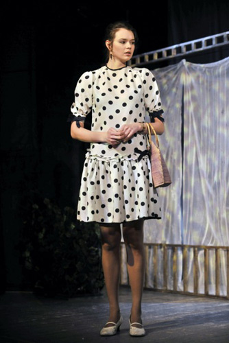 Я играю городскую даму, которая уехала когда-то в город и спустя много лет вернулась в деревню. Про себя могу сказать, что все мое детство прошло в деревне у прабабушки, поэтому я могла опираться на какие-то собственные воспоминания, хотя, конечно, все хозяйство прошло мимо меня. Когда на первом курсе работа только начиналась, мы как и советовала Ольга Николаевна Соломина, нисколько не играли возраст, но когда это вылилось в спектакль, не играть возраст, конечно, стало тяжело. Моя героиня – самая молодая из всех, ей около сорока лет. Но у нее, тем не менее, замашки избалованной городской девочки.