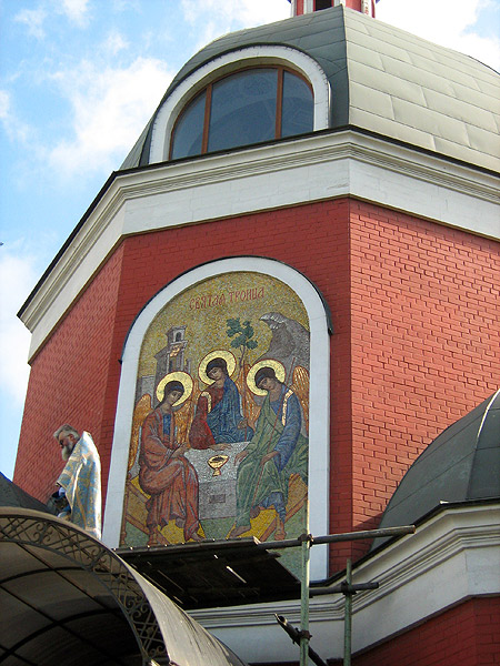 Храм в честь иконы Божией Матери «Знамение» в Переяславской слободе — одна из немногих никогда не закрывавшихся московских церквей. В воскресенье, 4 сентября, настоятель храма о.Федор совершил освящение новой мозаичной иконы святой Троицы. Это событие стало возможным не в последнюю очередь благодаря Малому театру, который пожертвовал средства на создание иконы. Отец Федор произнес слова благодарности театру.