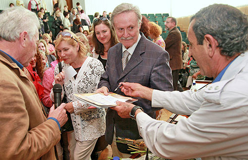 Встреча с любимым артистом давно перешагнула за регламент, а диалог все не иссякал, Наконец Юрий Мефодьевич напомнил, что сегодня в программе «Белой Вежи» — спектакль Малого театра в постановке его жены, заслуженного деятеля искусств России, профессора Ольги Соломиной. Но и после официальной точки дамы взяли в кольцо любимого артиста и долго не отпускали. Журналисты попытались оттеснить женскую компанию и задать Юрию Мефодьевичу серьезные вопросы о судьбе современного театра и его коммерческой составляющей. Но силы были неравны.