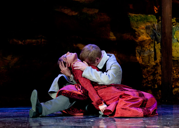 Отделяемые друг от друга легким живописным занавесом, сцены следуют одна за другой: вот городская пристань, где начинается действие, вот гостиная Огудаловой, вот квартира Карандышева. Герои Островского узнаваемы и наделены характерными чертами. Как и положено финансисту, Кнуров солиден и в летах (Вячеслав Езепов). Молодой, но уже богатый купчик Вожеватов (Сергей Потапов) весел и самодоволен. Карандышев (Дмитрий Марин) скромен и болезненно самолюбив. Красавец-мужчина Паратов (Алексей Фаддеев) хоть и помнит о своих чувствах к Ларисе, но себя любит больше. Вдова Огудалова в исполнении Людмилы Титовой — женщина, что называется, в самом соку и свою бедность компенсирует невероятной ловкостью в делах. Робинзон, как ему и положено, — настоящий шут, спившийся актер. Что же касается Ларисы (Александра Иванова), то она — существо чистое, невинное и полное романтических грез, которым в мире чистогана нет места.
