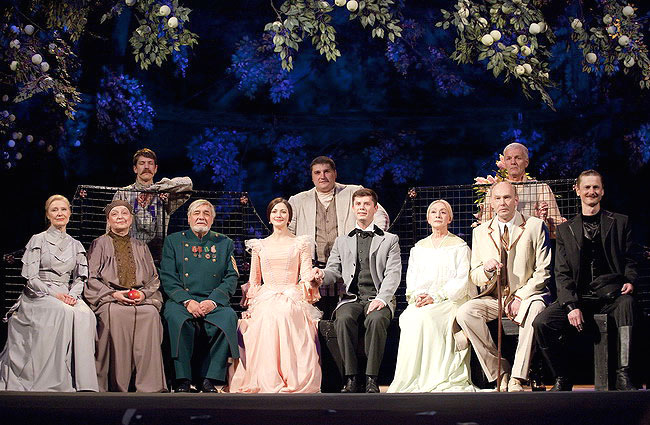 А еще зритель благодарно хлопает Силе Ерофеичу Грознову в исполнении народного артиста СССР и Беларуси Ростислава Янковского, который дивным образом преображается на сцене то в дряхлого, подволакивающего ногу старика, то в бравого солдата. Зрителю интересно наблюдать за перевоплощениями артиста. И даже за тем, как этот увешанный блестящими медалями «ундер» неторопливо чистит ножиком на сцене совсем не бутафорское и очень даже символичное яблоко – чтобы с аппетитом съесть его.