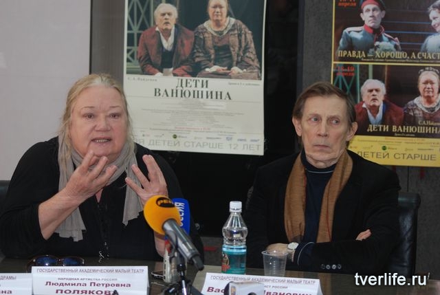 Приезжать в Тверь все равно что приезжать к очень близким родственникам, живущим далеко, и потому встречи происходят не так часто, как всем хотелось бы, но теплота этих встреч компенсирует разлуку. Примерно с таких слов вчера началась пресс-конференция, которую дали для тверских журналистов ведущие актеры Малого театра народные артисты России Людмила Полякова, Василий Бочкарев и Евгения Глушенко, а также художественный руководитель областного театра драмы Вера Ефремова, народные артисты страны Александр Чуйков, Ирина Андрианова и заслуженный артист России Георгий Пономарев.
