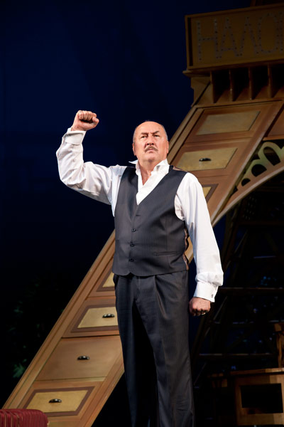 Клюев: Вы зря так думаете. Легкость появилась после многих репетиций. Никак не могли привыкнуть к оформлению. Эйфелева башня посередине очень мешает — пространство сложно осваивать. Так что мизансцен практически нет. Кропотливо разбирали текст, мотали кишки, над каждым словом сидели, сокращали. Ведь все французские пьесы несколько болтливы.