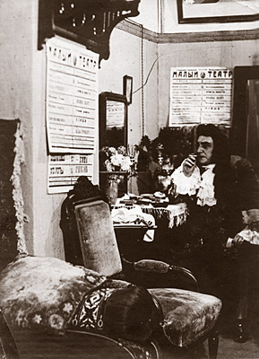Второй раз я видел Льва Николаевича в моей уборной в Малом театре, на репетиции «Власти тьмы». Он зашел в антракте на сцену к О.О.Садовской, исполнявшей, по его словам, роль Матрены «изумительно». Кто-то из администрации привел его в мою уборную, единственную свободную, так как я в пьесе не участвовал. Не ожидая такого посещения, я замер от неожиданности, войдя в свою уборную. И теперь не могу вспомнить, кто с ним был и о чем говорилось. Помню только, что при моем входе он поднялся и спросил меня: