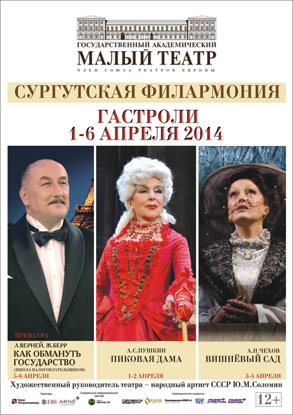 Гастроли Малого театра в Сургуте — это уникальный проект, который стал доброй и социально значимой традицией для нашего города и округа в целом. В июне 2013 года сургутяне и гости города уже имели возможность оценить четыре спектакля старейшего театра России. В апреле 2014 года, объявленного в России Годом культуры, Малый театр привозит три спектакля — «ПИКОВАЯ ДАМА», «ВИШНЕВЫЙ САД» и премьеру этого театрального сезона «КАК ОБМАНУТЬ ГОСУДАРСТВО». Оригинальные декорации, реквизит, костюмы, а самое главное, актерская игра (в первых составах) — все как на московских подмостках, да только сцена сургутская.