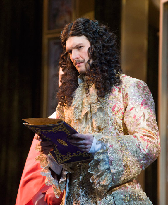 Не случайно во втором акте на первый план выходит лицедей Мольер в брутальном исполнении Дмитрия Марина, что ничуть не нарушает режиссерского рисунка. Наоборот, действие приобретает еще большую упругость и многозначность, ибо Жан Батист – тот персонаж, без которого замысел постановщика был бы не полным. Более того, в нем Юрий Соломин видит современного художника, продолжающего преподносить публике уроки истинных ценностей.