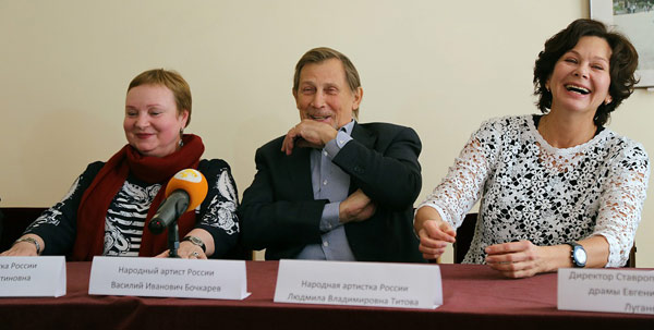 В этом году Государственный академический Малый театр открыл свой 260-й сезон. К этой дате коллектив подготовил несколько творческих проектов, в том числе и гастроли по городам России. В первый день пребывания в Ставрополе состоялась пресс-конференция, в которой приняли участие народные артисты России Василий Бочкарёв, Евгения Глушенко, Людмила Титова и генеральный директор Малого театра Тамара Михайлова.