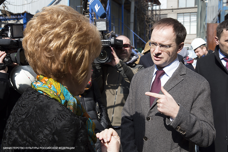 4 апреля Министр культуры Российской Федерации Владимир Мединский проверил ход реконструкции Государственного академического Малого театра. Экскурсию по историческому зданию провели художественный руководитель театра, народный артист СССР Юрий Соломин и генеральный директор театра Тамара Михайлова.