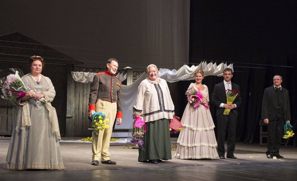 Особое восхищение вызывали диалоги Людмилы Поляковой (нянька Фелицата) и Василия Бочкарева (Грознов). Кто сидел в партере ближе к сцене, мог заметить, что у обоих исполнителей неподражаемая актерская пластика, мимика и темперамент. По ходу спектакля почти каждый их выход сопровождался аплодисментами. Чтобы это понять - надо посмотреть спектакль. Звёзды первой величины ярко сияли в окружении других малых звёзд: Сергея Вещева (приказчик Барабошева), Ларисы Кичановой (вдова Зыбкина), Ольги Жевакиной (Поликсена), Дениса Курочки (садовник Глеб Меркулыч).