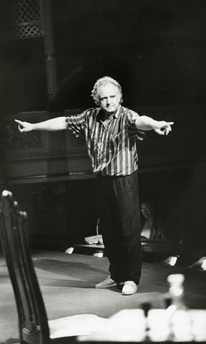 – С годами понимаешь, что она – не один из лучших, а просто лучший педагог. Фантастические, обширнейшие знания литературы, драматургии, режиссуры. Конечно, ее «школа» живет в каждом из нас, ее учеников. Даже Георгий Александрович Товстоногов брал у Кнебель уроки, читал ее книги. Мария Осиповна была уникальным, фантастическим человеком, последней из могикан. Она ни в чем и никогда не притворялась. В ней были очевидны глубинная интеллигентность, мудрость, она всегда старалась понять другого человека. Люди же встречались ей разные, и события происходили разные. Потом уже я узнал о ее увольнении, о том, сколько она пережила самодуров. Все выдержала! Мария Осиповна сама себя называла Епиходовым, потому что бесконечно что-то ломала. (Улыбается.) Я молодой был довольно крупный, помню, как носил ее на руках из машины в аудиторию – она ходила тогда только с костылями. Только одна претензия у меня к ней как к педагогу – она воспитала в нас слишком уж интеллигентное отношение к жизни и людям. Не настроила на серьезнейшую борьбу, битву с действительностью.
