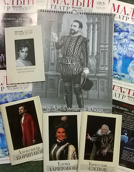 Накануне Нового года Малый театр выпустил буклеты, посвященные творчеству Вячеслава Езепова (автор Лада Акимова), Александра Коршунова (автор Нина Шалимова) и Елены Харитоновой (автор Наталья Витвицкая). Кроме того, в новой «Исторической серии» был издан буклет «Руфина Нифонтова. Против течения», текст которого написала Елена Микельсон. Для ценителей истории Малого театра был создан календарь на 2017 год, рассказывающий о замечательном актере, драматурге и директоре Малого театра Александре Ивановиче Сумбатове-Южине (автор – Вера Тарасова).