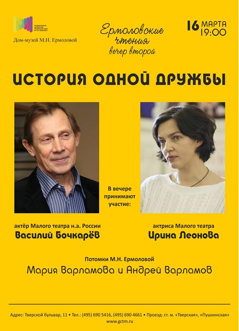 16 марта Дом-музей М.Н.Ермоловой приглашает вас на второй вечер из цикла "Ермоловские чтения".