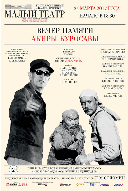 Дорогие друзья! 24 марта приглашаем вас на Вечер, посвященный памяти великого японского режиссера Акиры Куросавы.