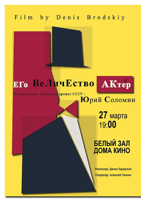 27 марта в 19:00 в Белом зале Центрального дома кинематографистов состоится премьера фильма Дениса Бродского «Его Величество Актер. Юрий Соломин».