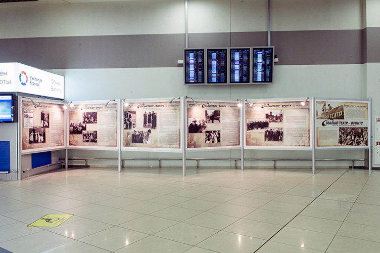 В терминале Е (2 этаж) открылась выставка “Малый театр — фронту”, посвященная деятельности Малого театра в годы Великой Отечественной войны. Эта экспозиция — дань памяти и выражение благодарности тем, кто поддерживал дух бойцов-красноармейцев на пути к Победе.