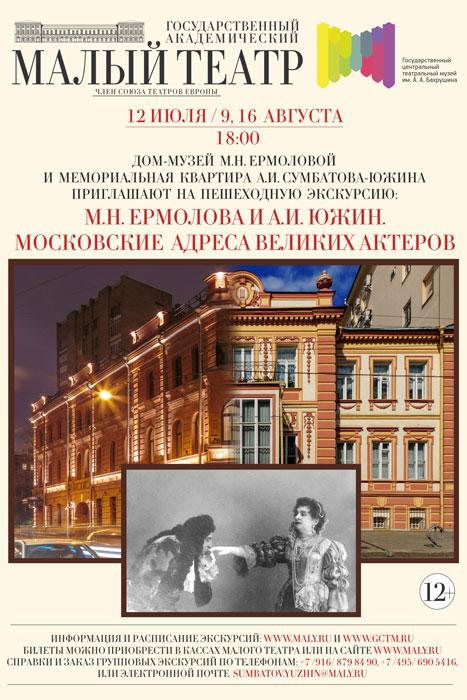 Мемориальная квартира А.И. Сумбатова-Южина совместно с Домом-музеем М.Н. Ермоловой приглашают Вас на пешеходную экскурсию "М.Н. Ермолова и А.И. Южин. Московские адреса великих актеров".