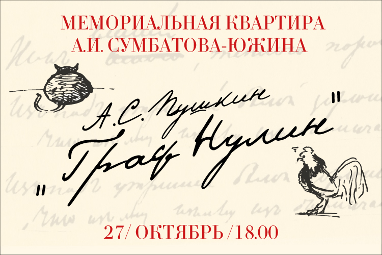Шуточную поэму «Граф Нулин» в интерьере квартиры князя Сумбатова разыграют Карина Саханенко, Александр Наумов и Станислав Сошников.