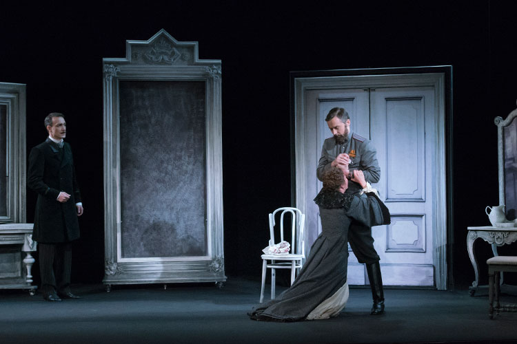 – Прежде всего об актёрах. Они с огромным уважением отнеслись к историческому материалу. На протяжении всего репетиционного процесса все приносили старые фотографии, письма, книги, газеты. Актёры, исполняющие роли Николая до отречения от престола (Василий Зотов) и Николая перед расстрелом (Василий Дахненко), изучали всю жизнь царя. В спектакле есть единственный женский образ – Александры Фёдоровны (Варвара Андреева), который, как натянутая струна, находится на грани разрыва. Это и чувственность, и материнство, и неистовая вера, любовь, надежда на спасение. Каждое её прощание с Николаем при разлуке – всегда будто последнее, навеки. Виртуозно показан конфликт между двумя генералами Алексеевым (Сергей Кагаков) и Рузским (Виктор Андрианов), которые фактически определили судьбу императора. Нет ни правых, ни виноватых – все хотят сделать как лучше для государства. Психологический рисунок завораживает. Артисты раскрывают свою правду и являются истинными адвокатами своих героев. Министр внутренних дел Протопопов (Константин Юдаев) пытается в меру своих сил помочь Николаю и Александре Фёдоровне, но, поставленный в ситуацию неизбежности переворота, вынужден отстраниться. При этом убедительность актёрской игры вызывает понимание и сочувствие.