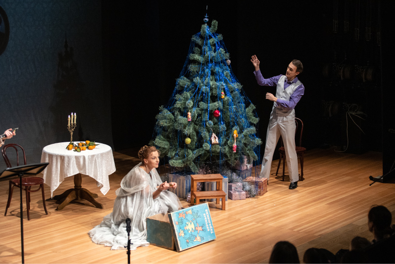 21 декабря артисты Ирина Леонова и Константин Юдаев впервые выступили на сцене Малого зала «Филармонии-2» с самой волшебной новогодней сказкой из репертуара театра - «Приключения новогодних игрушек» по книге Елены Ракитиной. Обычно этот спектакль идет в камерной атмосфере Мемориальной квартиры А.И. Сумбатова-Южина. В этом году мы решили показать его на большой сцене.