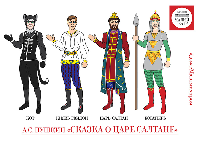 Герои сказок, которых вы могли видеть на сцене Малого театра в спектаклях «Снежная королева», «Сказка о царе Салтане» и «Золушка» оживут, если вы раскрасите и нарядите их сами.