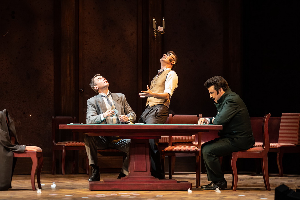 На сцене Малого театра – карточная игра. Это настоящий апофеоз игры – беспощадной, балансирующей по лезвию ножа, театральной, бравурной и не знающей никаких преград. В этом весь Гоголь. Блистательная история про карточных шулеров описана им с невероятной жизненной силой, ее персонажи – мастера, а то и «философы» в своем «нелегком» деле! Шутка ли – увидеть в карточной колоде свою музу! Все эти Ихаревы, Гловы, Замухрышкины, Утешительные – превосходный материал для перевоплощения и артисты Малого театра с удовольствием окунаются в гоголевскую игровую стихию, увлекая за собой зрителЯ. В главных ролях Игорь Петренко, Валерий Афанасьев, Глеб Подгородинский, Василий Зотов и другие.