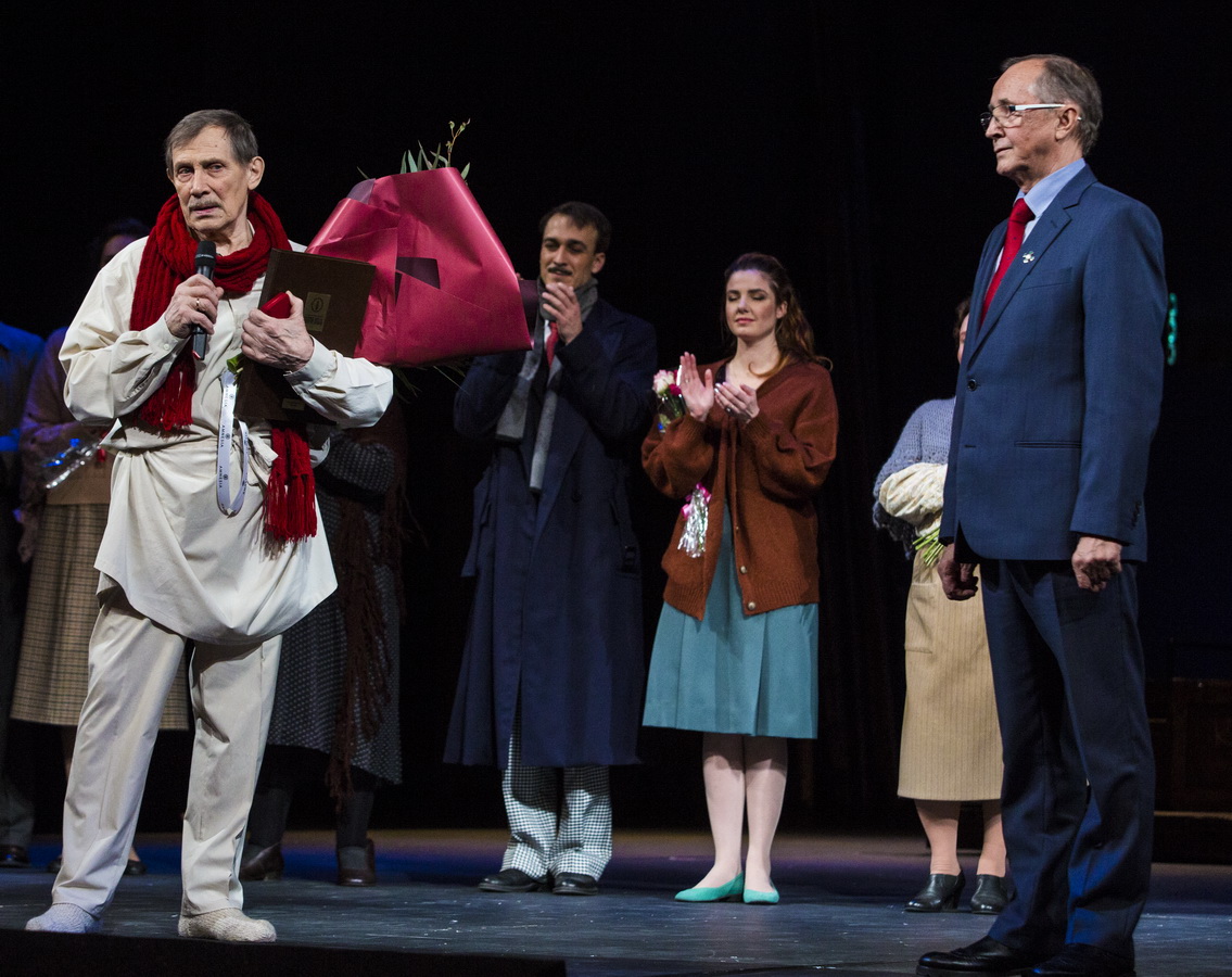 Мы уже сообщали, что на XVIII Международном театральном форуме "Золотой Витязь" Золотая медаль имени Николая Мордвинова «За выдающийся вклад в театральное искусство» была присуждена народному артисту России Василию Бочкареву. 11 декабря после спектакля "Рождество в доме Купьелло" награду Василию Ивановичу вручил президент "Золотого Витязя" народный артист России Николай Бурляев. Предлагаем вашему вниманию фоторепортаж.