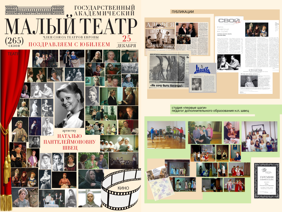 25 декабря – юбилей актрисы Малого театра Натальи Пантелеймоновны Швец. От души поздравляем актрису и желаем ей крепкого здоровья, благополучия и новых радостных встреч с благодарным зрителем на родных подмостках!