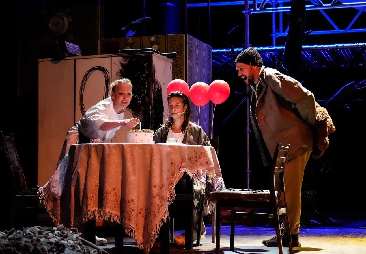 Спектакль "Шахтёрская дочь" – о девушке двадцати двух лет от роду по имени Мария. В страшном пожарище битвы за Донецк в 2014 году у неё погибает отец, защищая свой родной город. Мария принимает решение занять его место на передовой, становится снайпером. Это история о том, как война перемалывает людей, и насколько сложно не сломаться и остаться человеком, а не зверем.