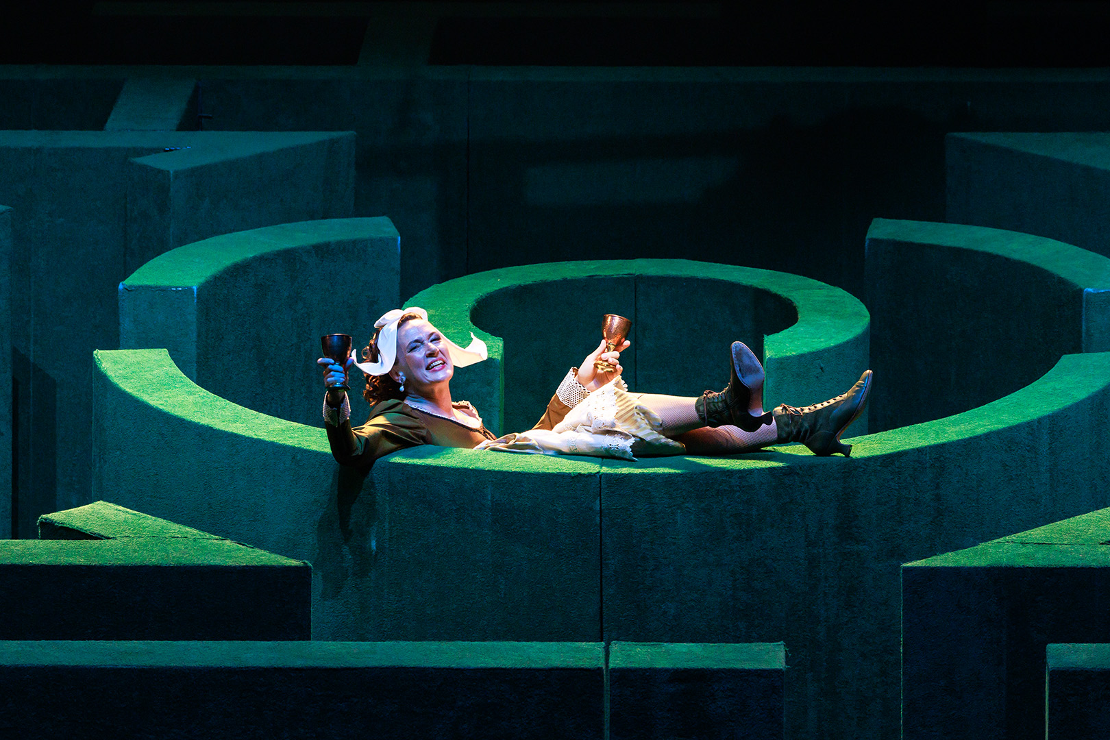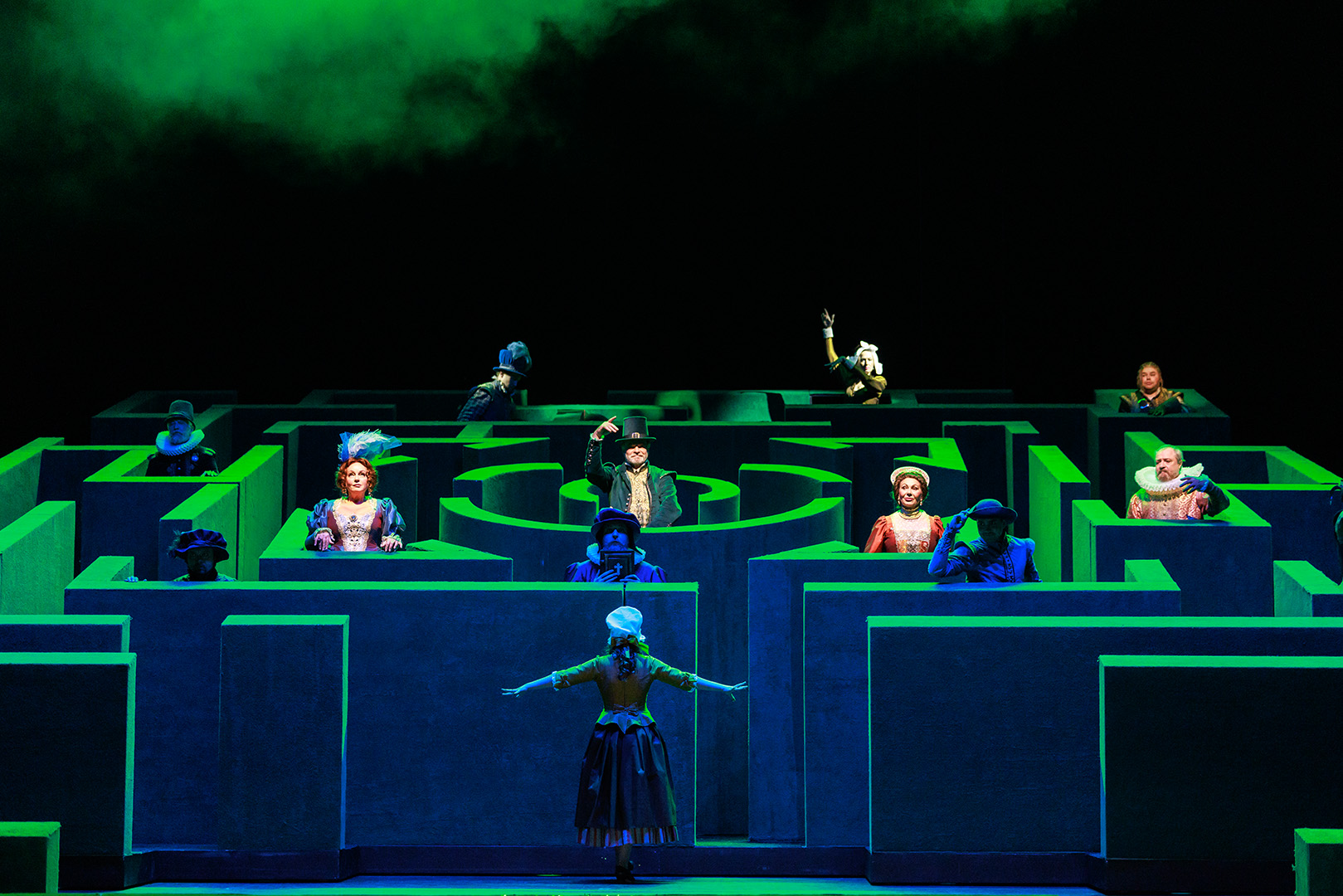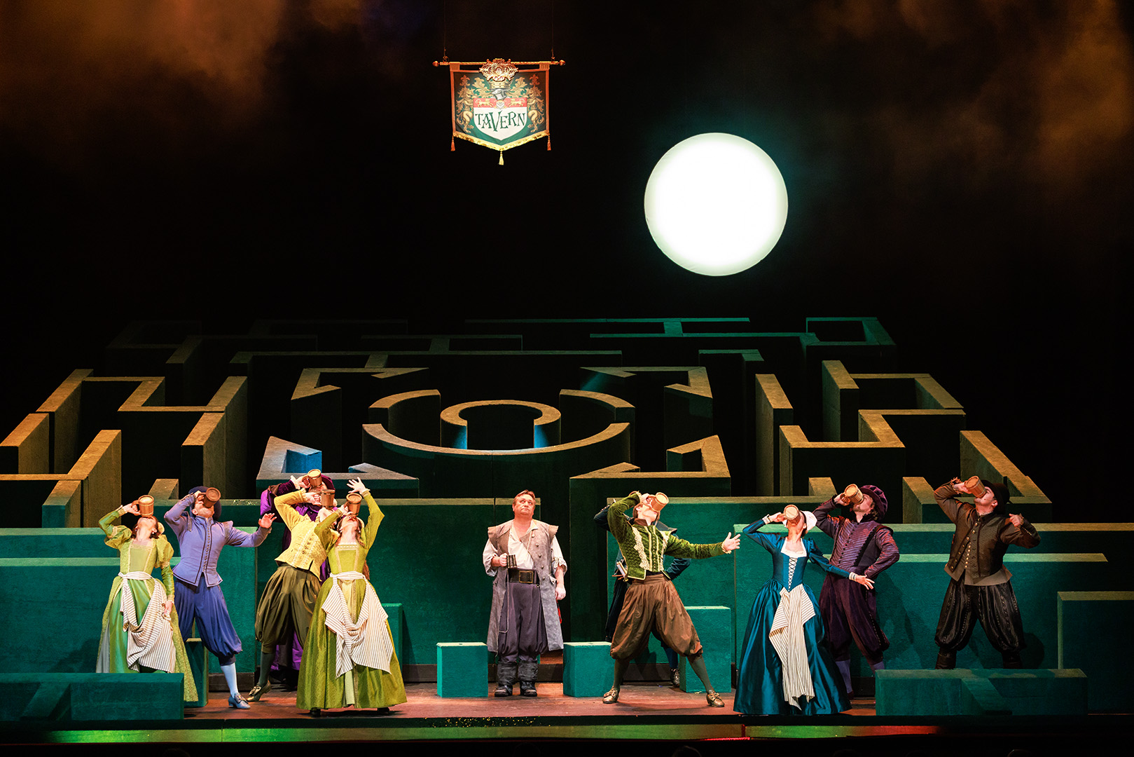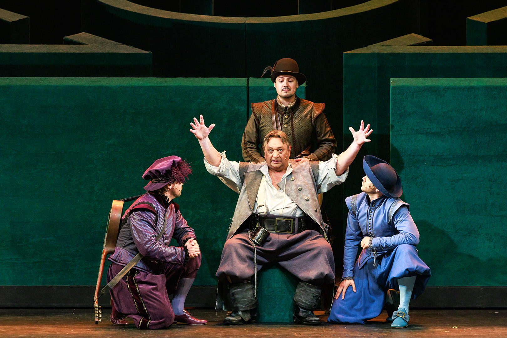 Режиссёр-постановщик Александр Вельмакин: «Виндзорские женушки» – это ода радости, где нет ни одного отрицательного героя. Все персонажи добродушные, игривые, где-то нелепые. Если герои и пакостят, они делают это с удовольствием, по-доброму. Сэр Фальстаф ведет себя, как ребенок, но не вкладывает в свои действия ничего негативного, он хочет поиграть, пошалить. Он будто возвращается в детство, когда не было ответственности и все было проще».