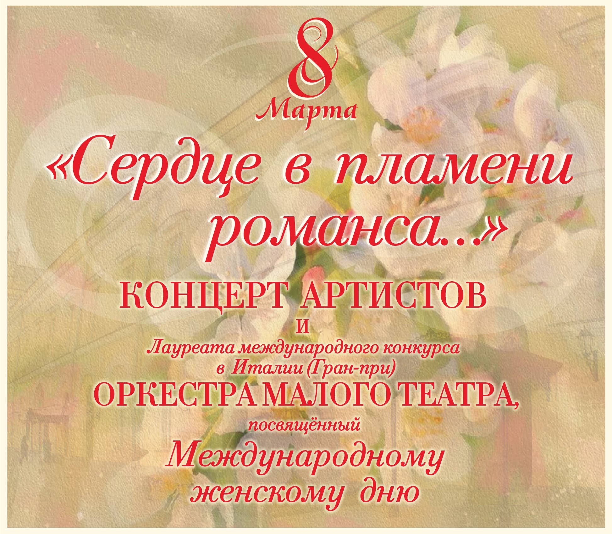 КОНЦЕРТ, ПОСВЯЩЕННЫЙ МЕЖДУНАРОДНОМУ ЖЕНСКОМУ ДНЮ "СЕРДЦЕ В ПЛАМЕНИ РОМАНСА..."